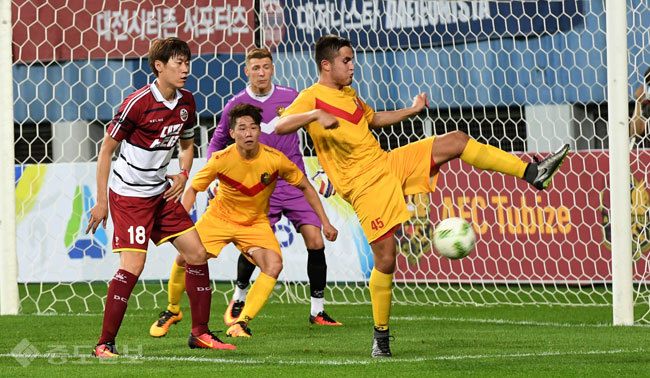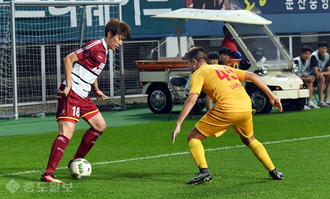 전반 21분 레반 셍겔리아의 프리킥 때 이범수의 선방으로, 또 다시 실점위기에서 벗어난 대전은 전반 37분 추가골을 터트렸다.